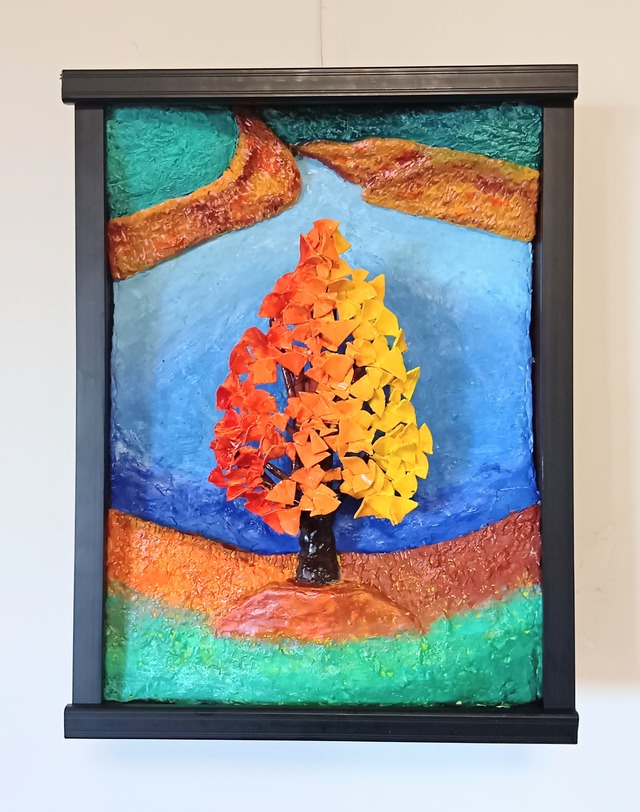 (5)レイヤー技法:複数の層を立体的に重ねて、また色を変えながら複雑に層を重ねる技法です。アートに奥行きや質感、視覚的な厚みを感じさせ、立体アートの魅力を惹きつけました。