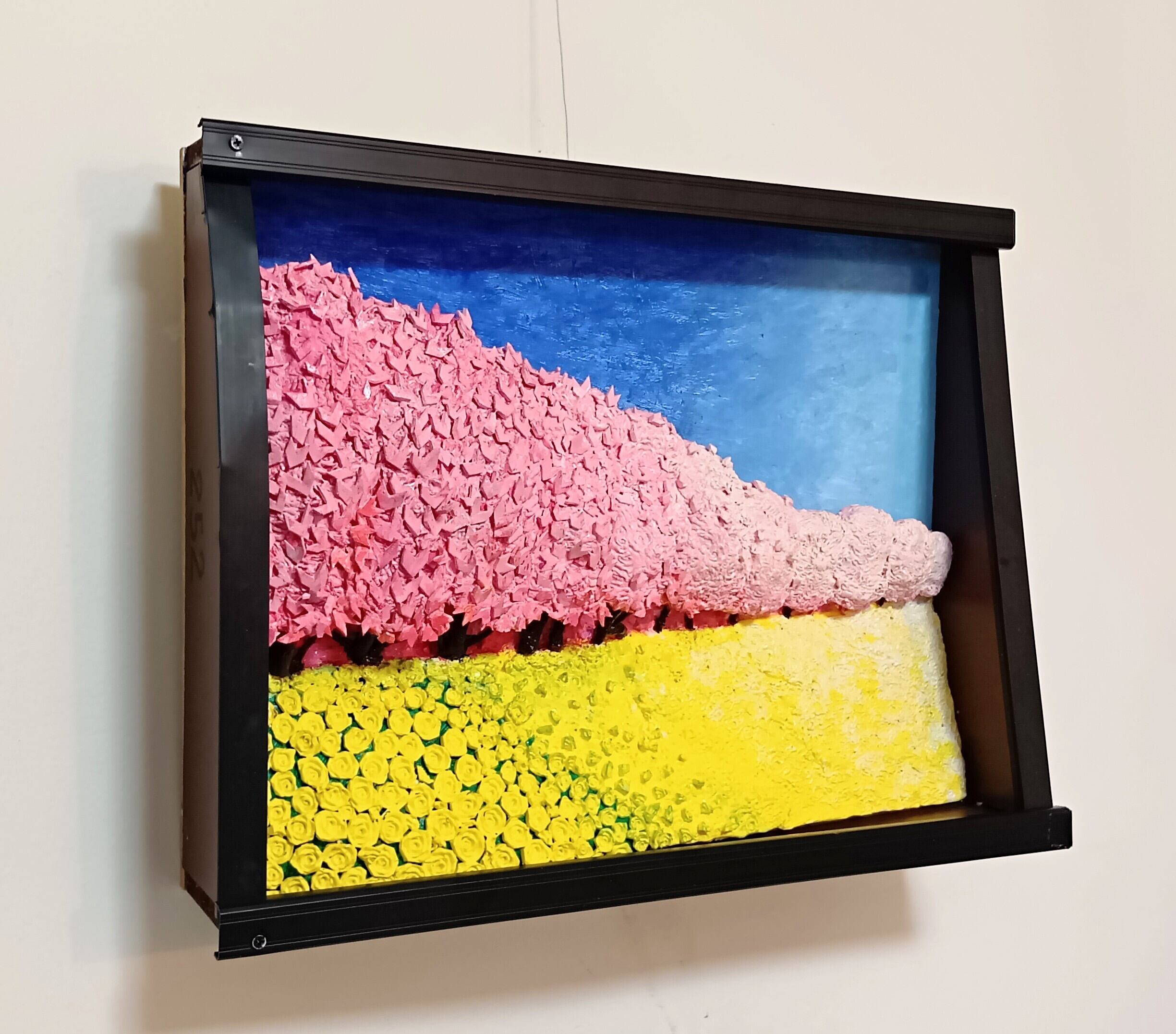 作品は4号公園の桜堤と隣接する菜の花畑の風景。