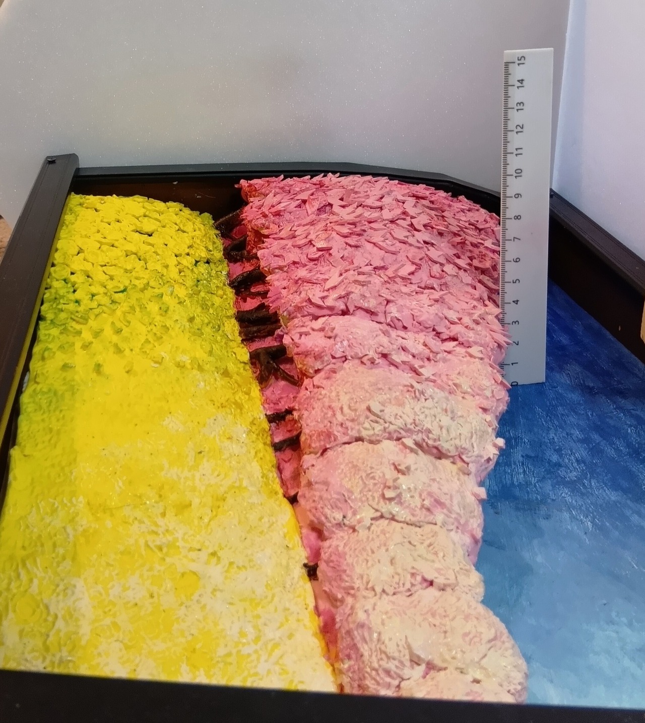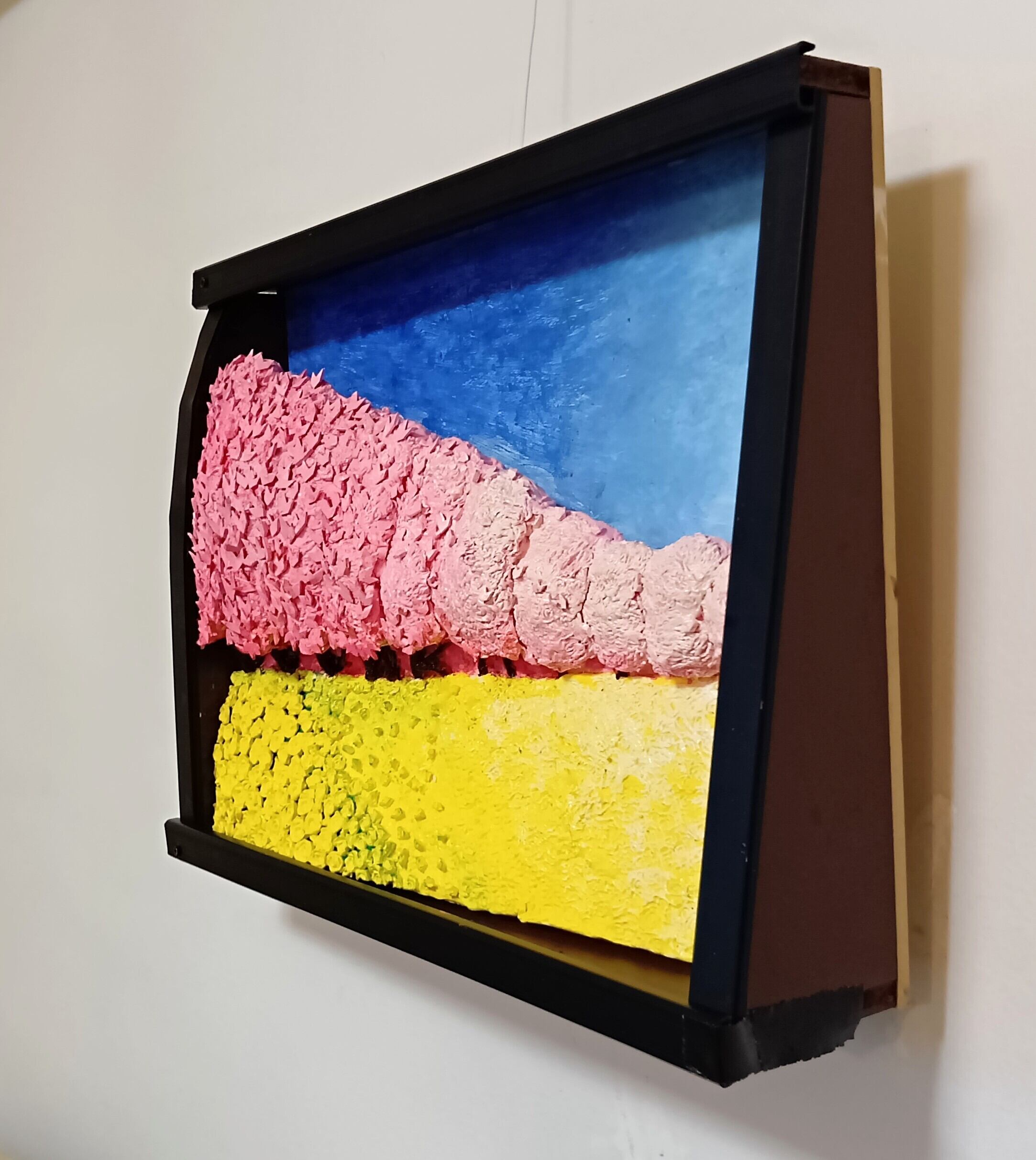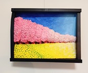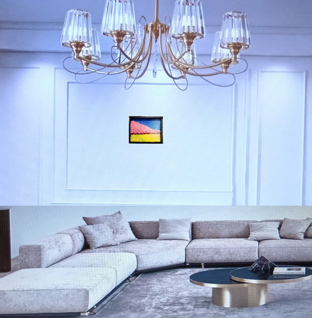 耐久性に優れた樹脂粘土を材料に整形研磨し、硬化と光沢の表面加工剤等で装飾した、未来3D粘土アートの立体絵画。