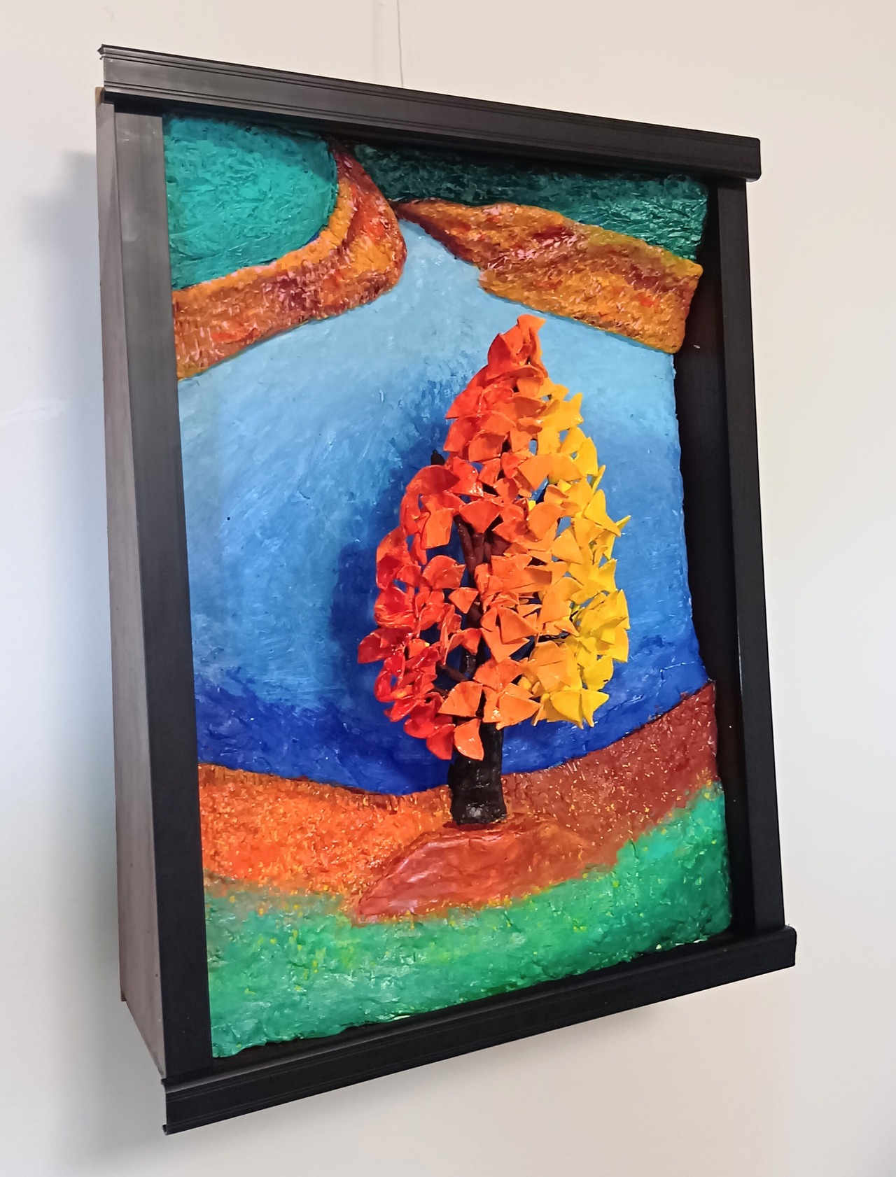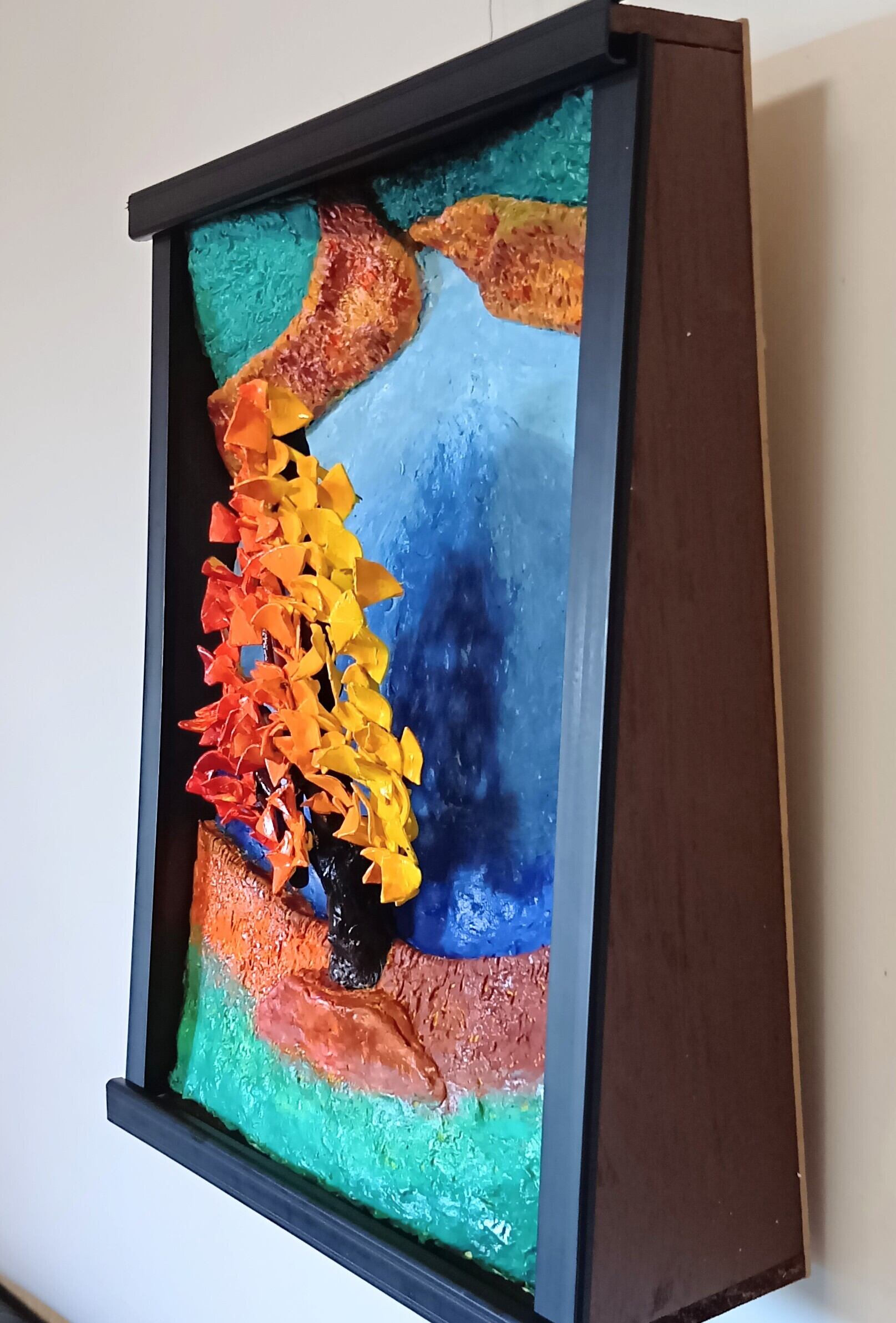 幹や枝は絵から浮いてますが、大小の針金が入ってるので丈夫で折れません。