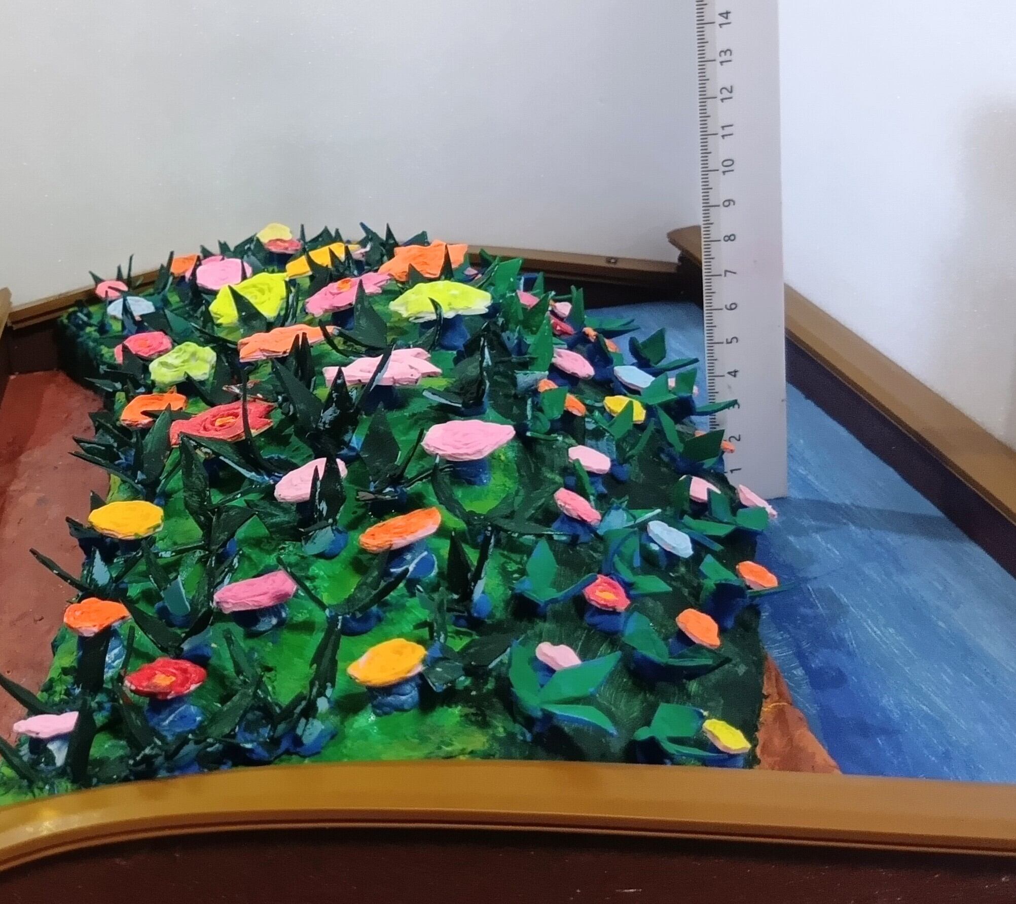 耐久性に優れた樹脂粘土を材料に整形研磨し、硬化と光沢の表面加工剤等で装飾した、未来3D粘土アートの立体絵画。