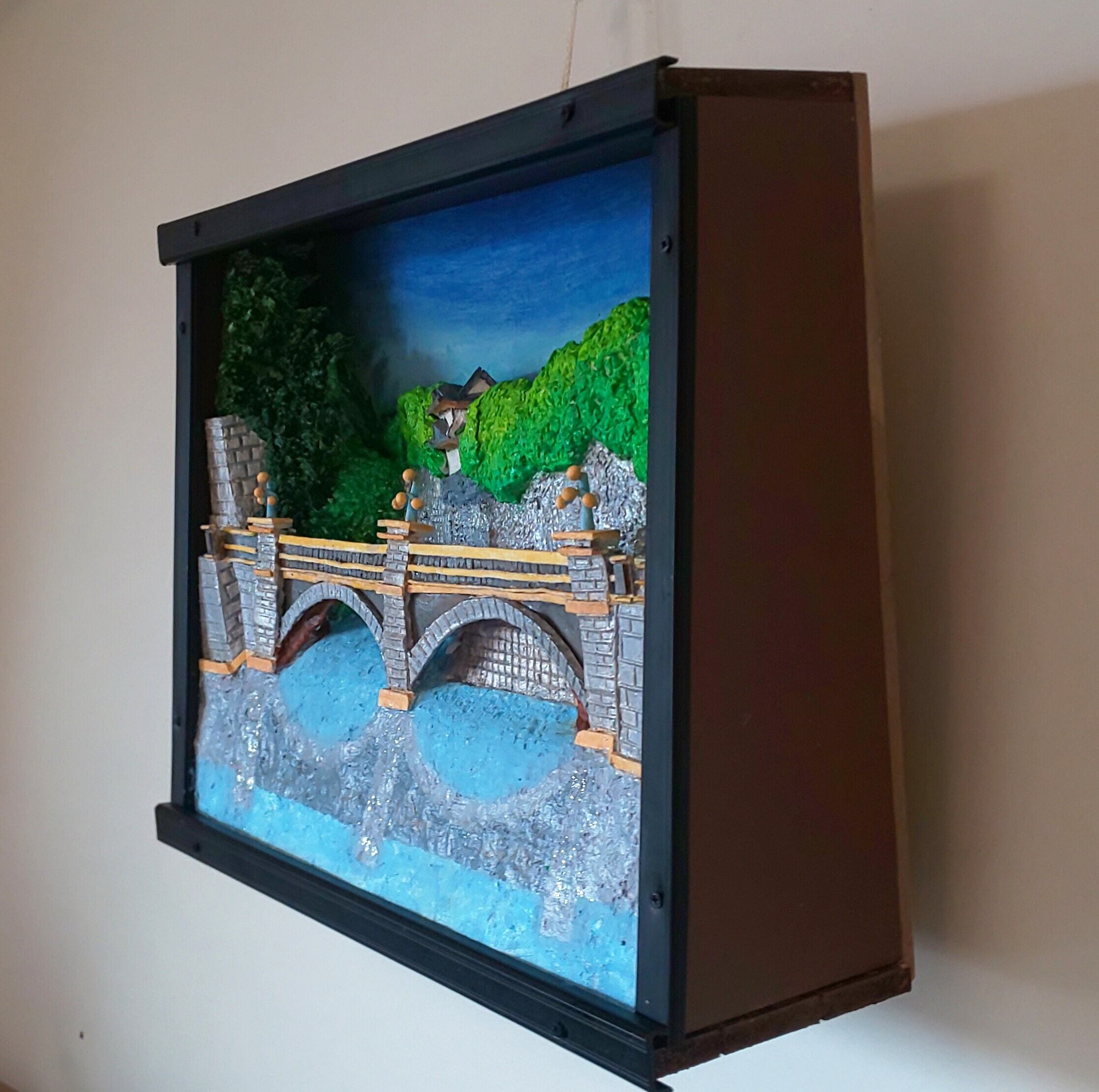 耐久性に優れた樹脂粘土を材料に整形研磨し、硬化と光沢の表面加工剤等で装飾した、未来3D粘土アートの立体絵画。