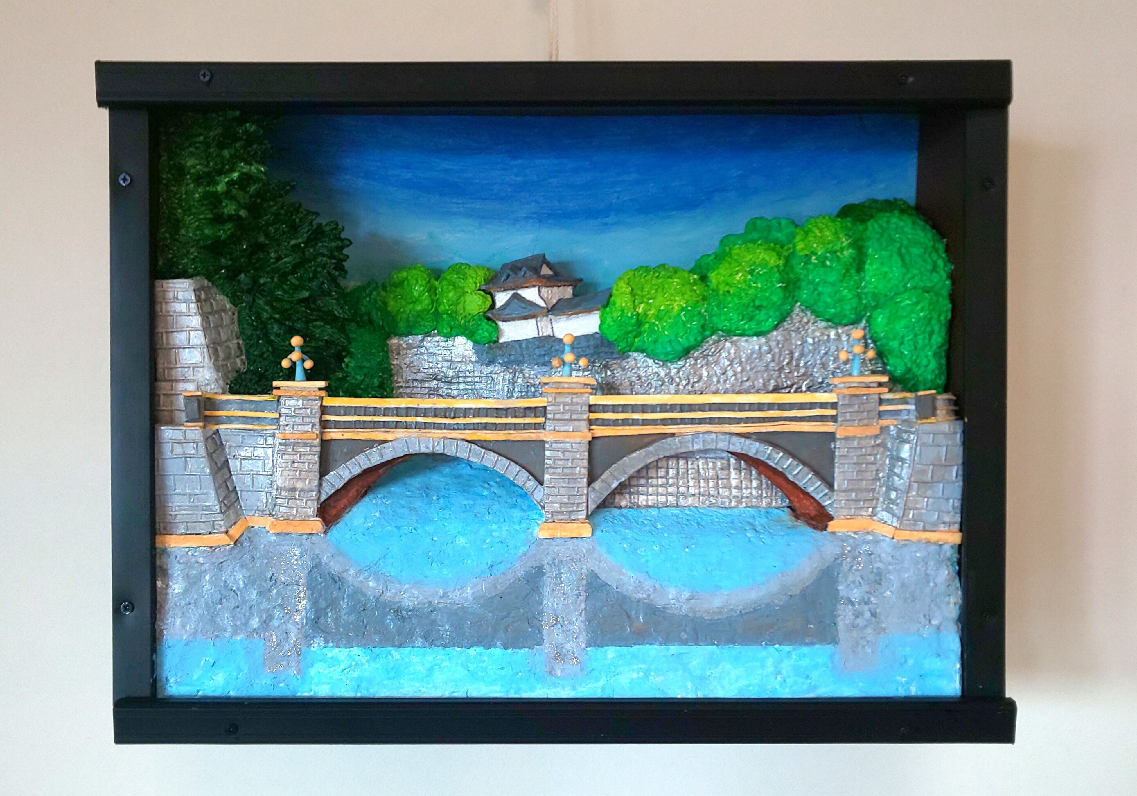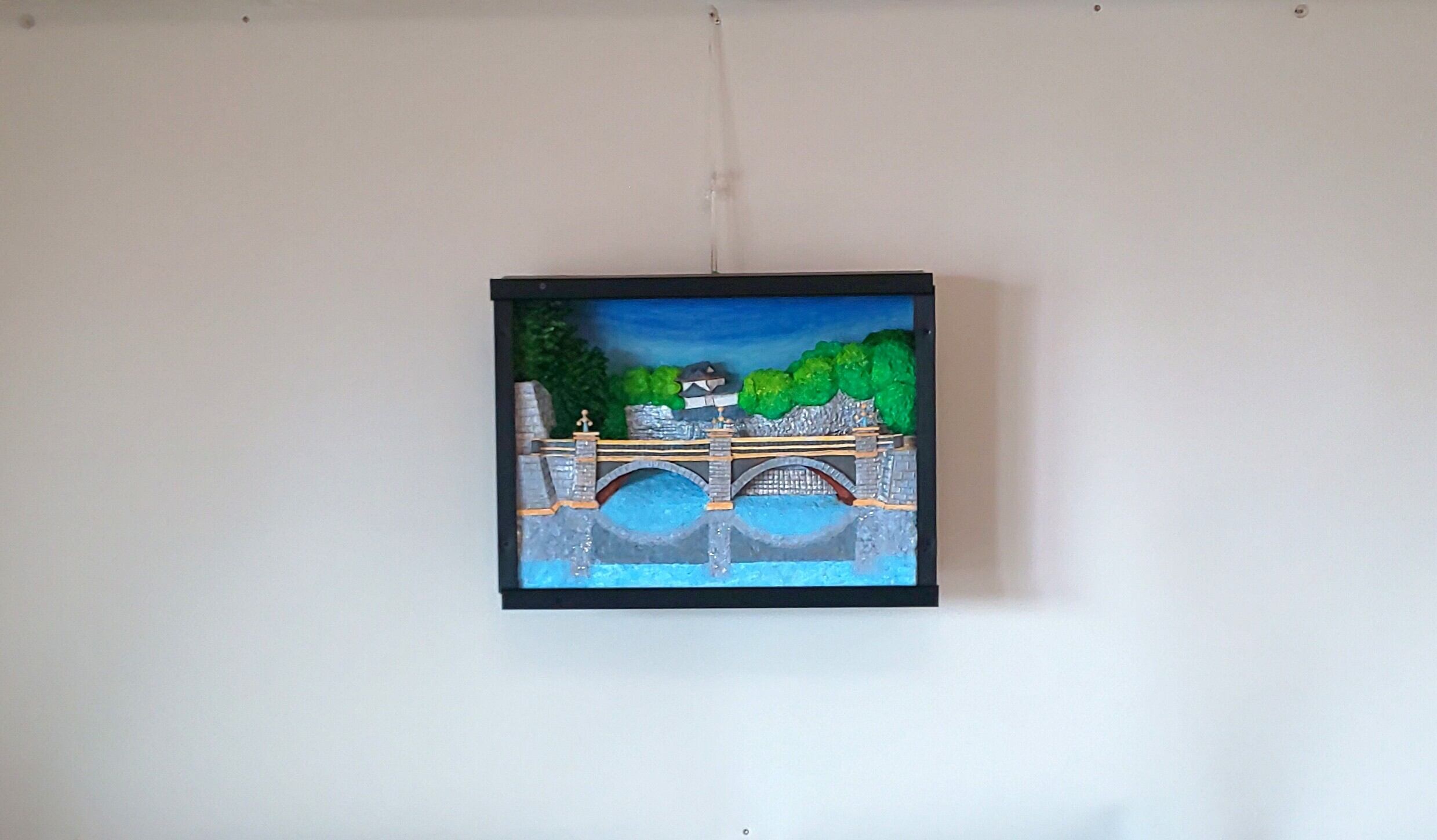 商品は、皇居正門の濠にかかる、皇居正門の憧れの「二重橋」の立体絵画。