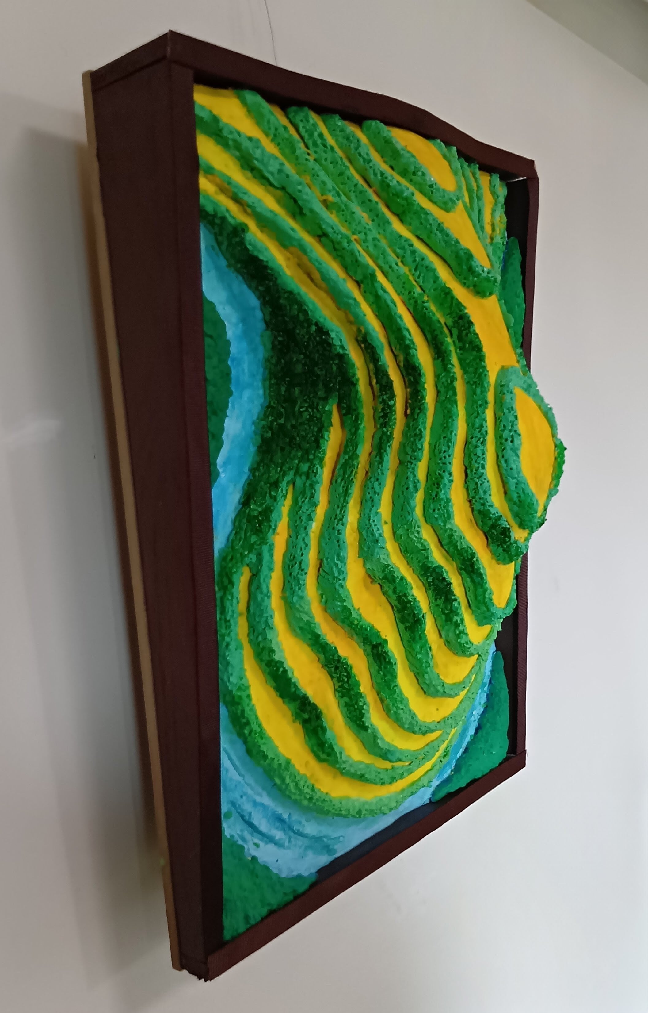 商品は、稲の収穫期の「ベトナムの扇の棚田」の立体絵画。