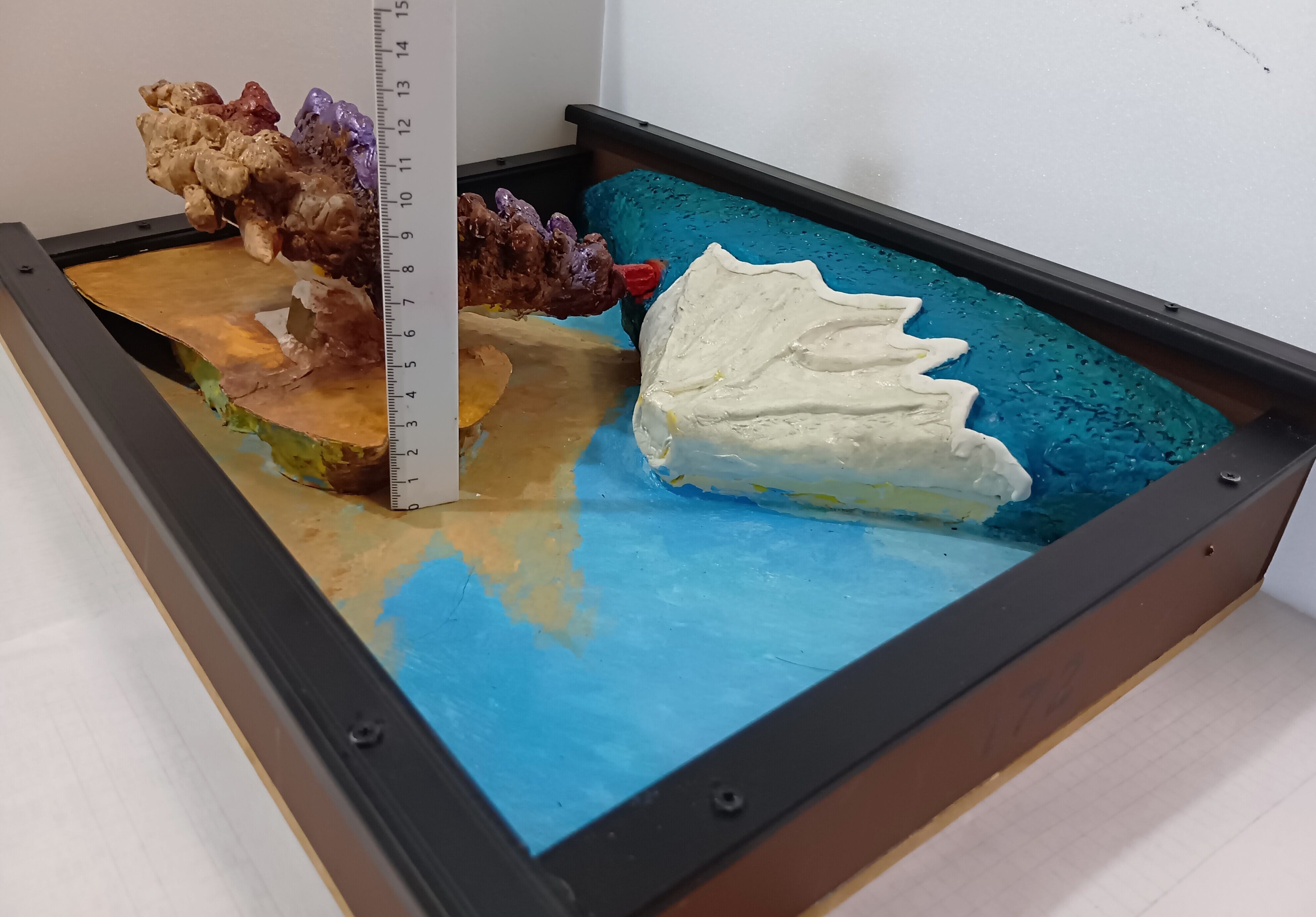 耐久性に優れた樹脂粘土を材料に整形し研磨で表面加工、硬化と光沢の表面強化剤で装飾した未来3Dクレイアート(粘土美術)。