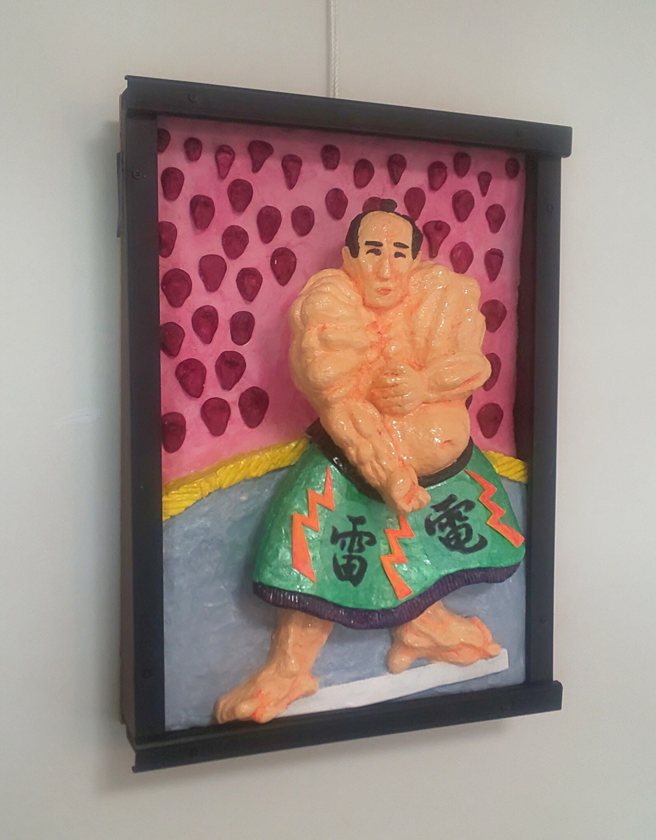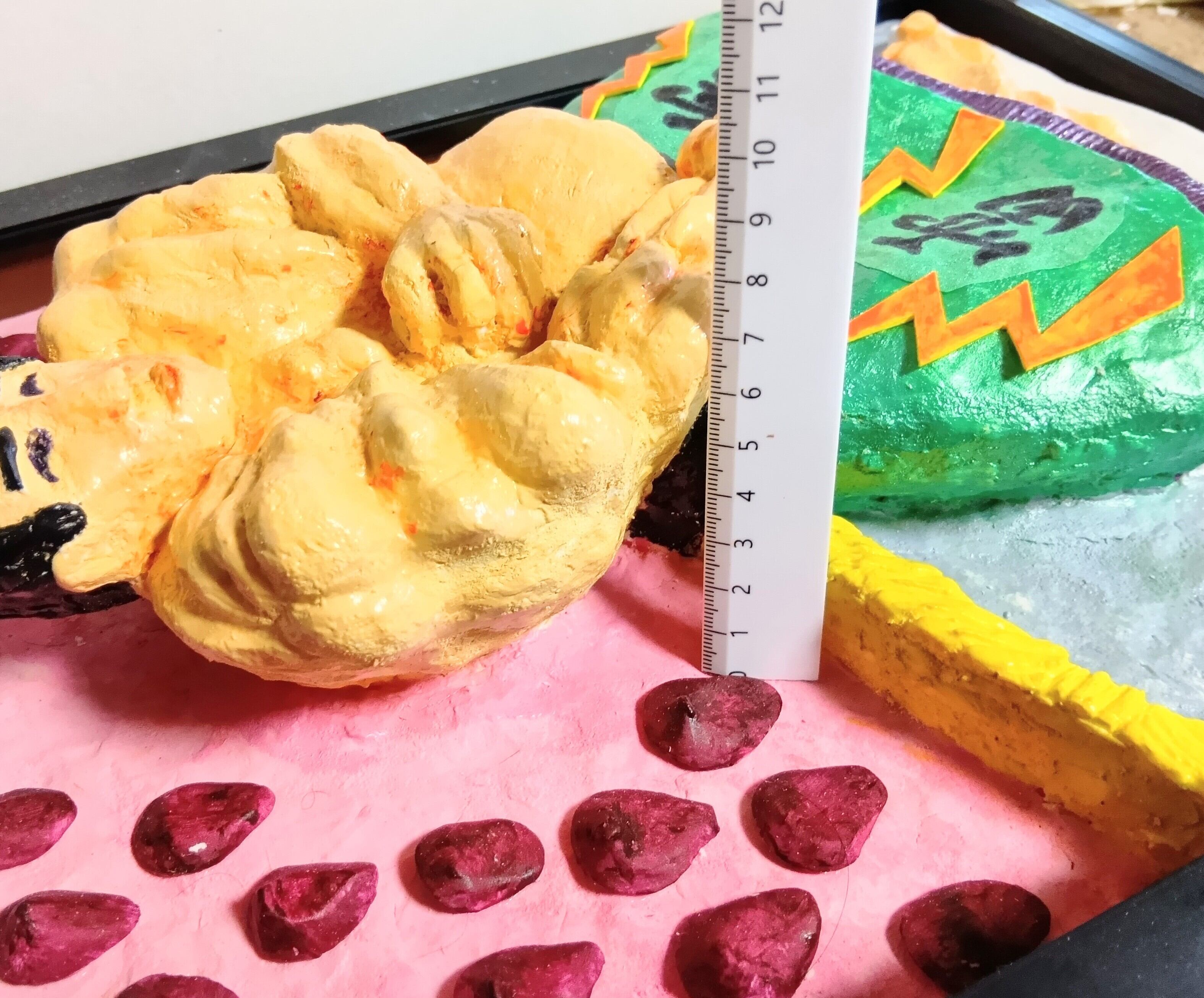 耐久性に優れた樹脂粘土を材料に整形研磨し、硬化と光沢の表面加工剤等で装飾した、未来3D粘土アートの立体絵画。