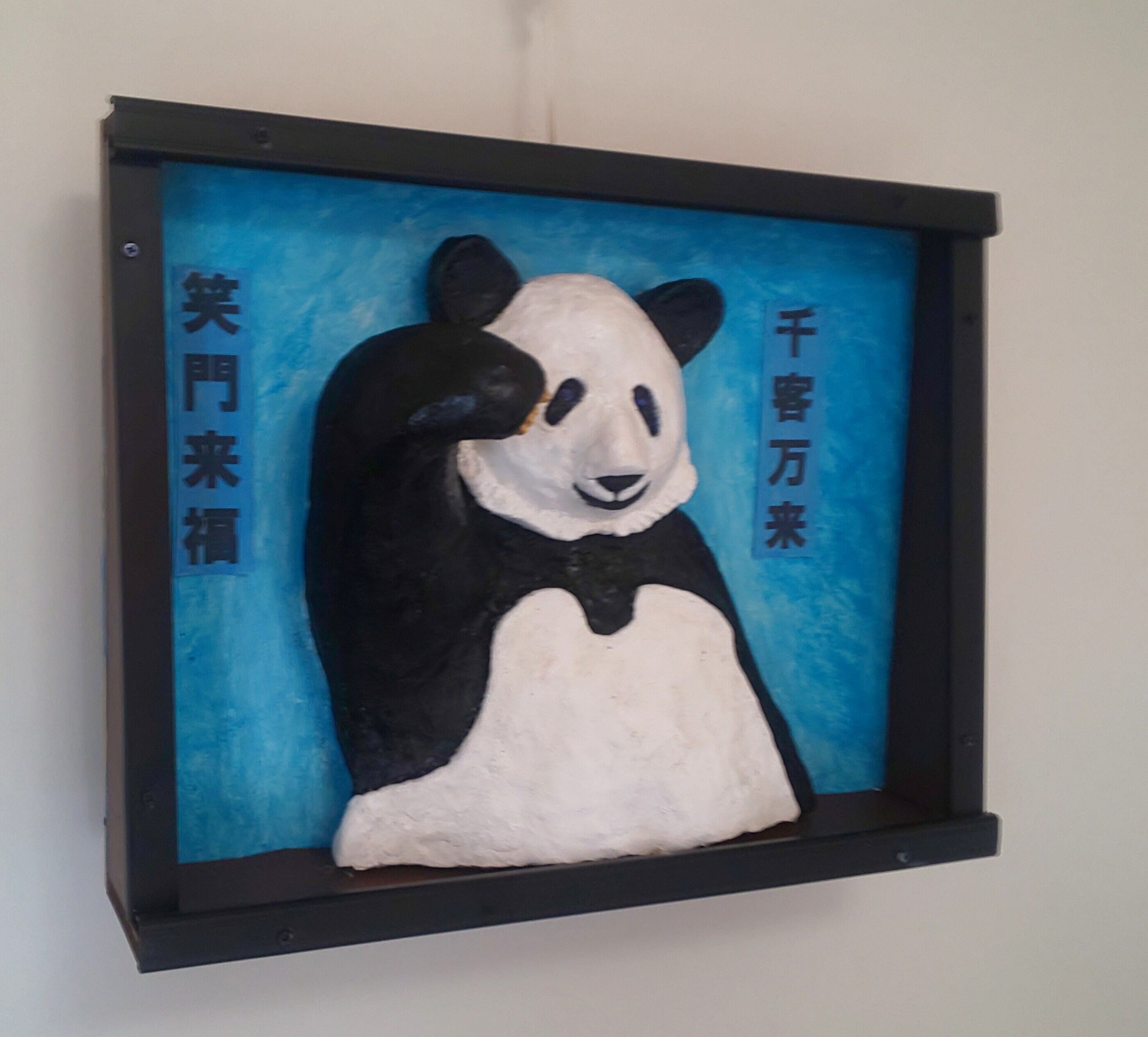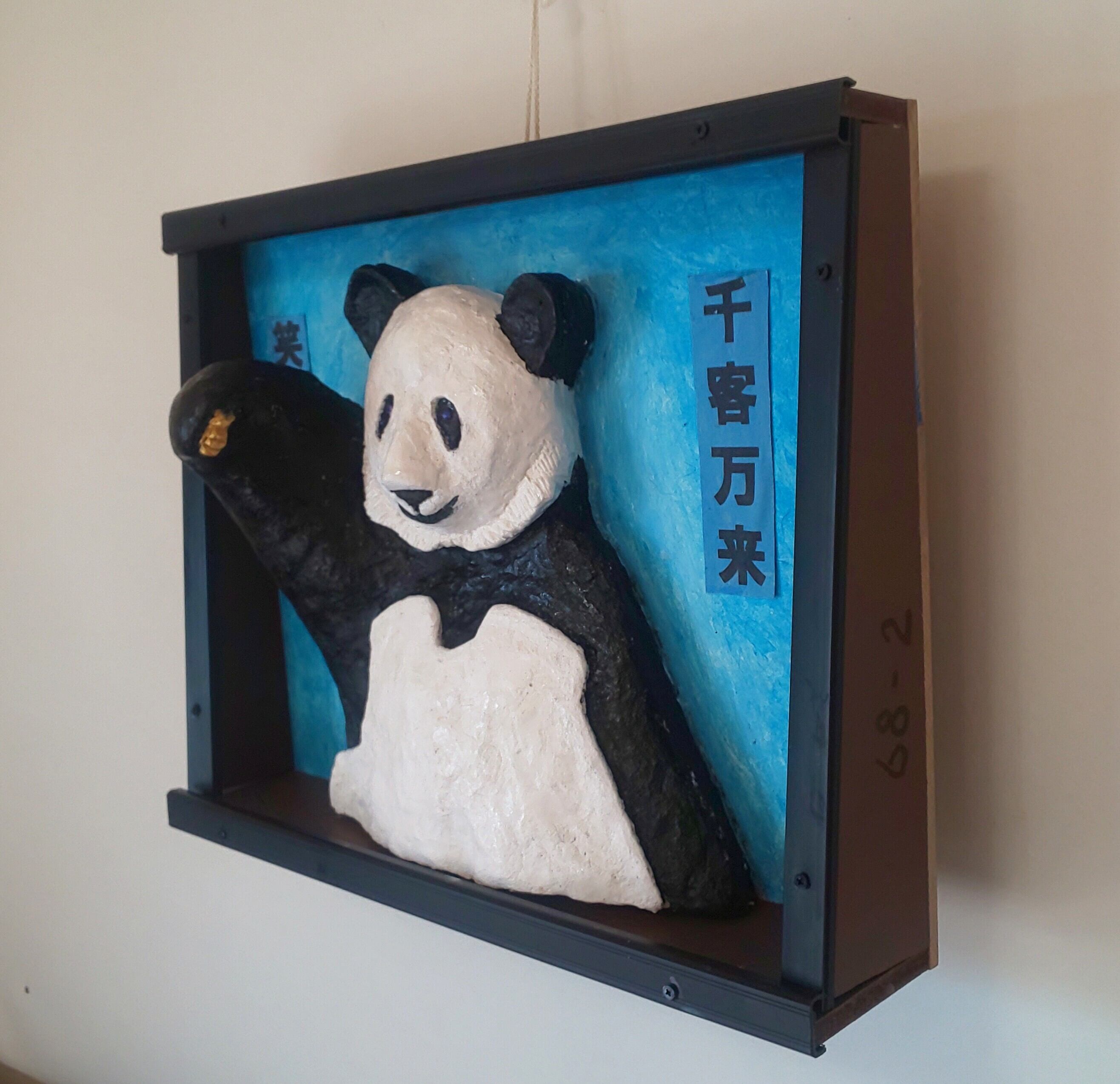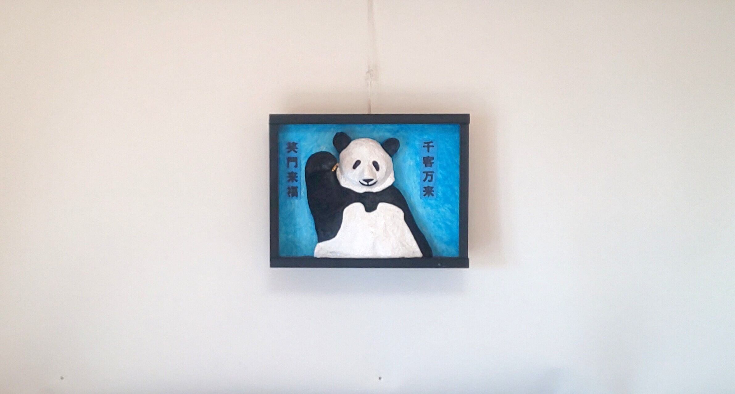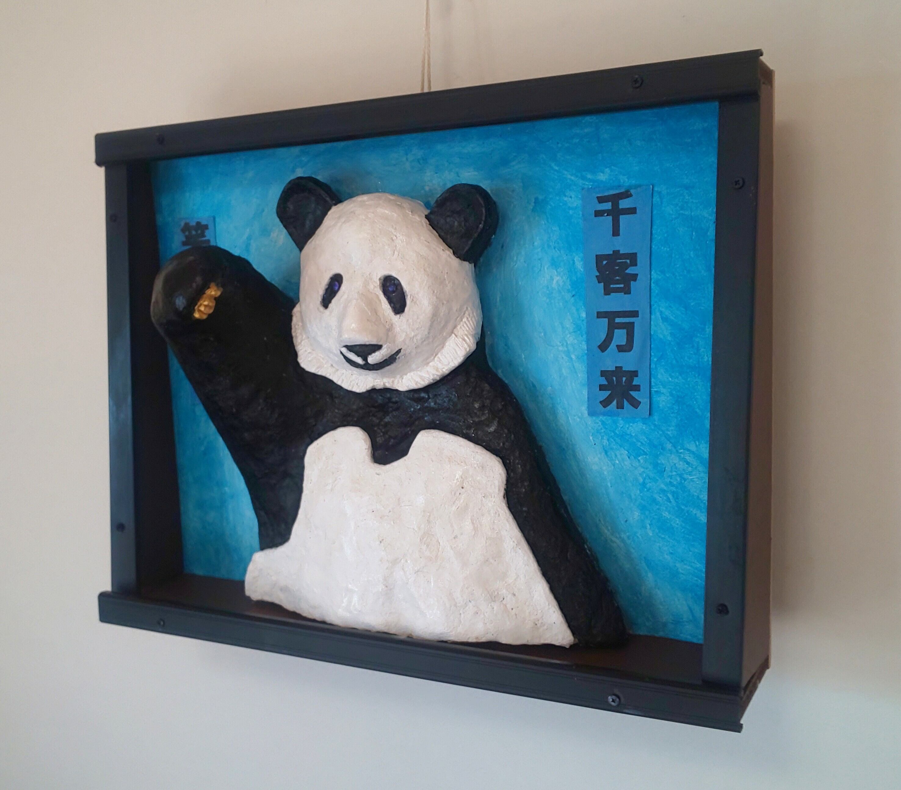 作品の「招きパンダ」は、場所を取らない壁掛けの立体絵画にして祈願しやすく。人気があるので招き猫以上に、「商売繁盛」「無病息災」「恋愛成就」「合格祈願」「交通安全」などを招いてくれます。