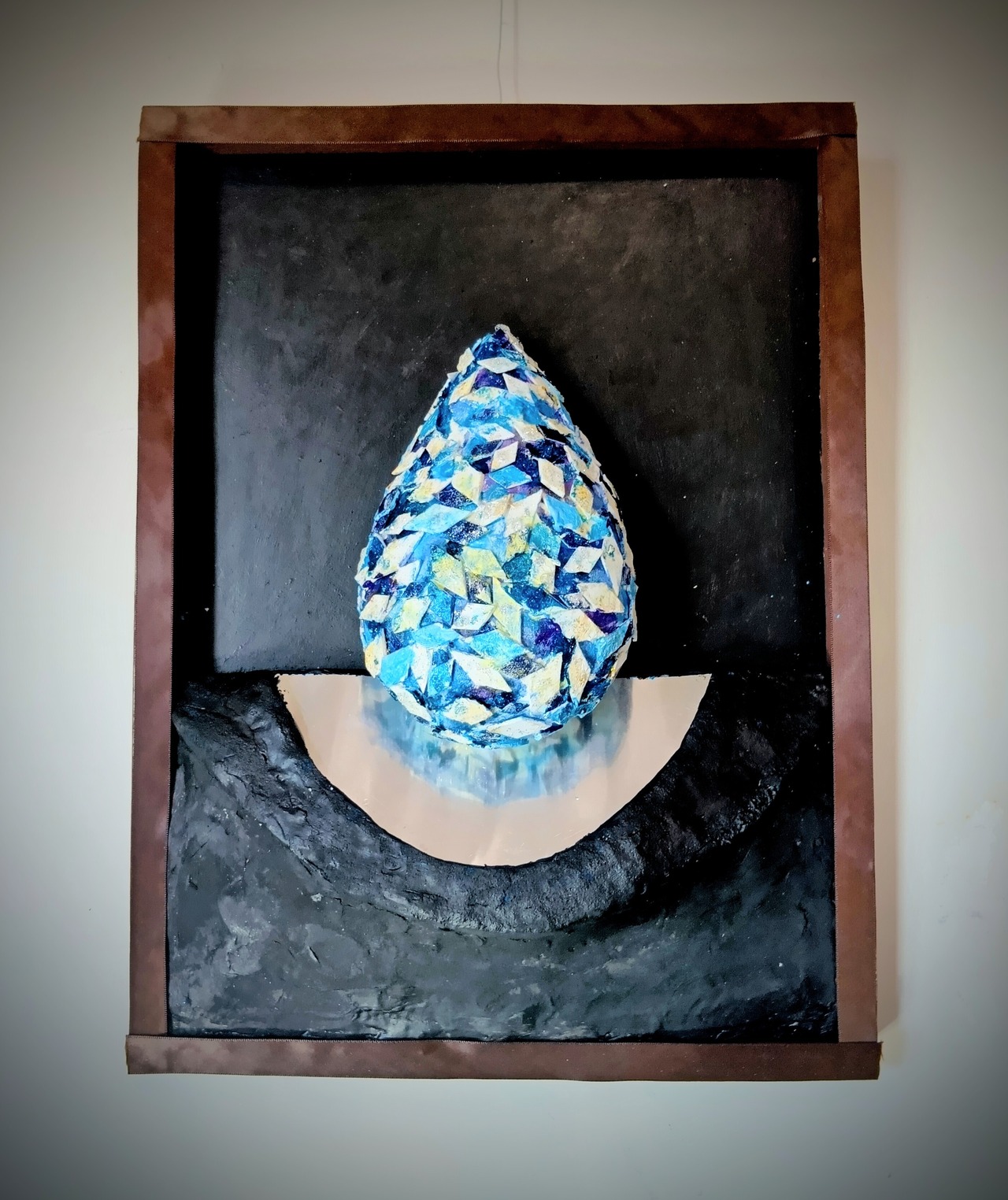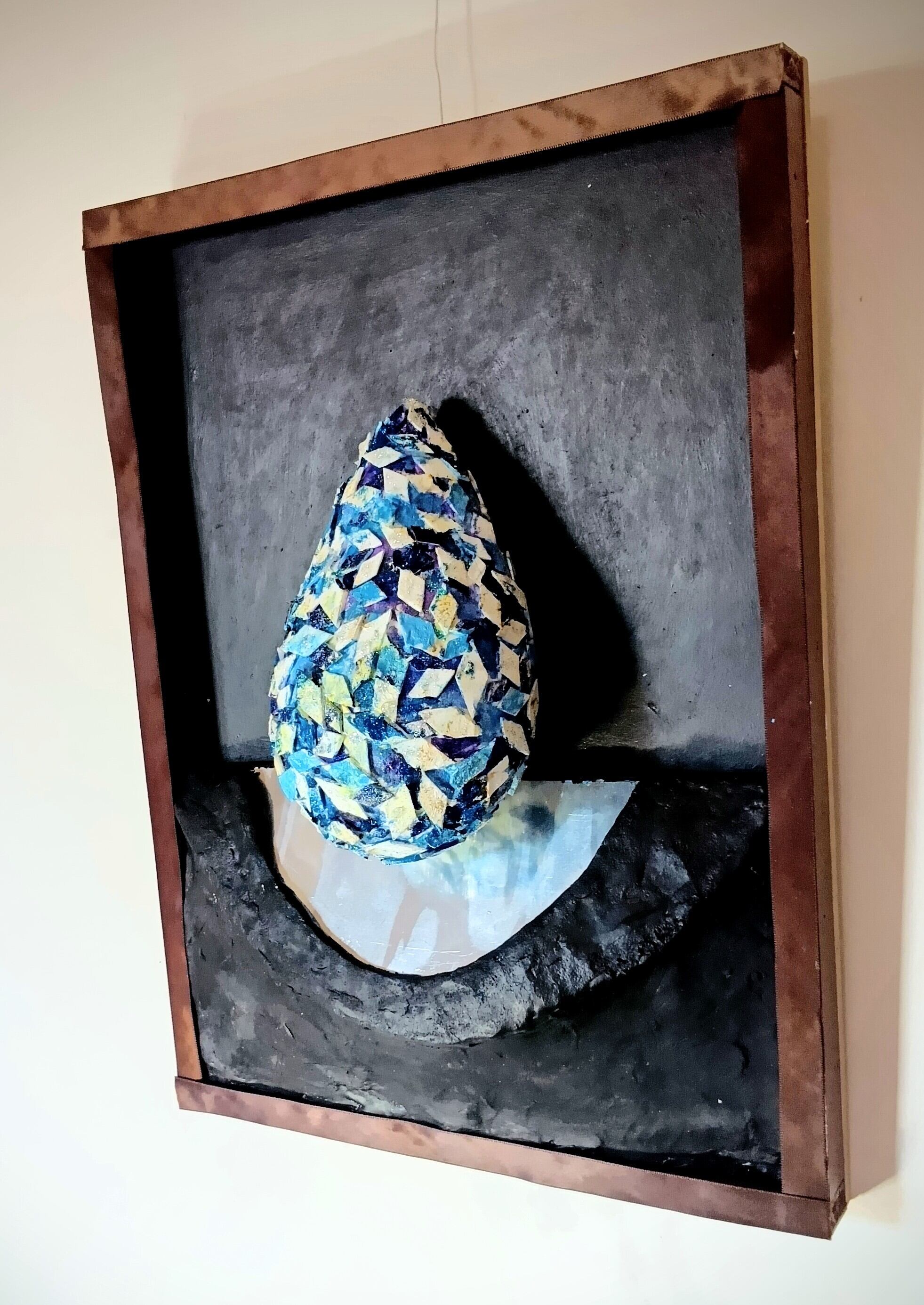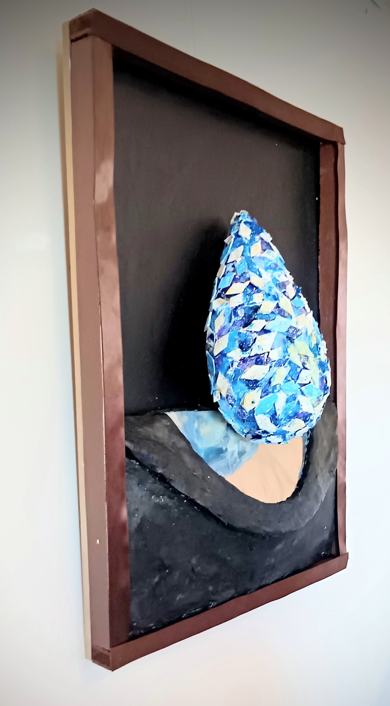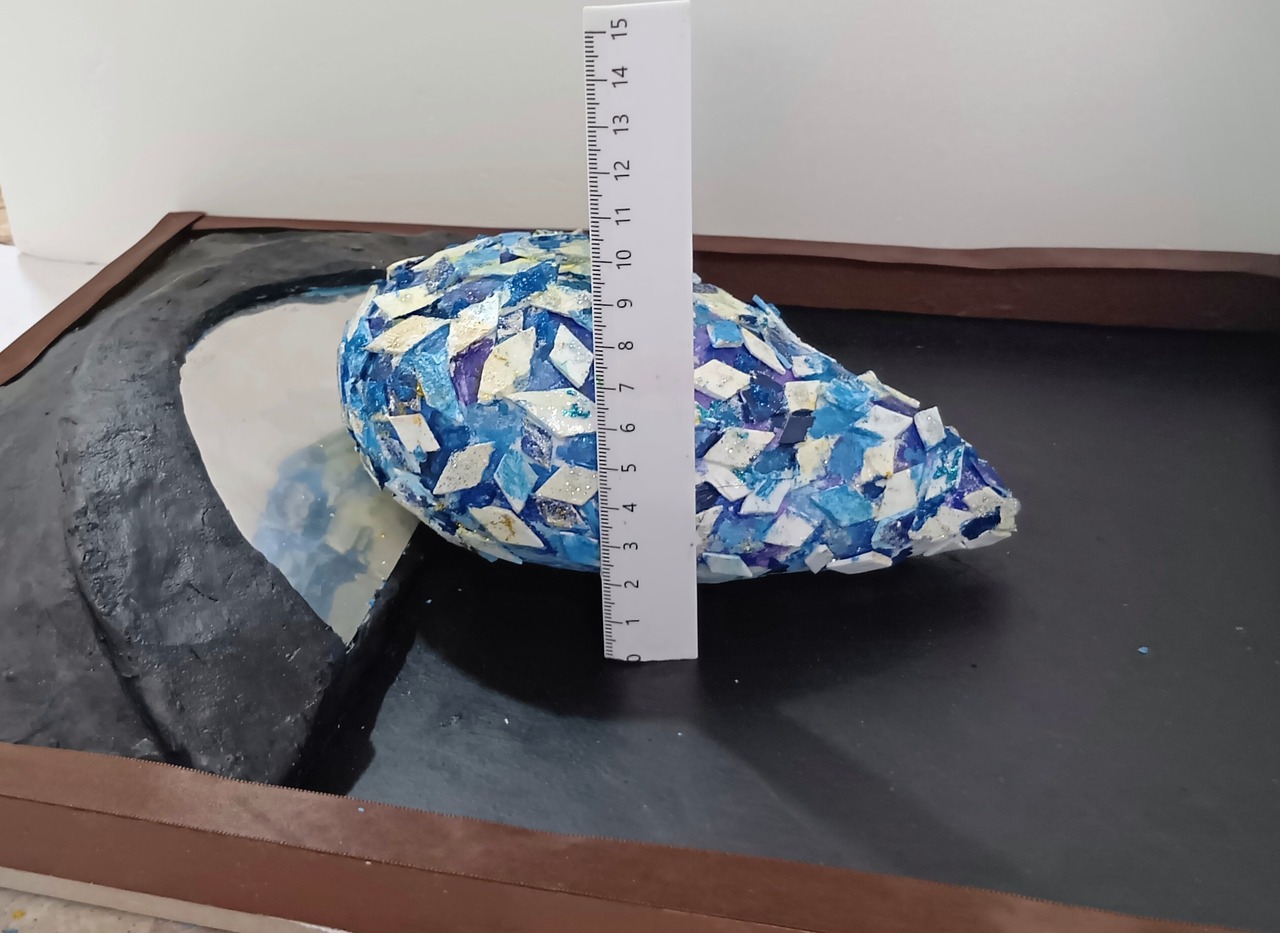 耐久性に優れた樹脂粘土を材料に整形研磨し、硬化と光沢の表面加工剤等で装飾した、未来3D粘土アートの立体絵画。