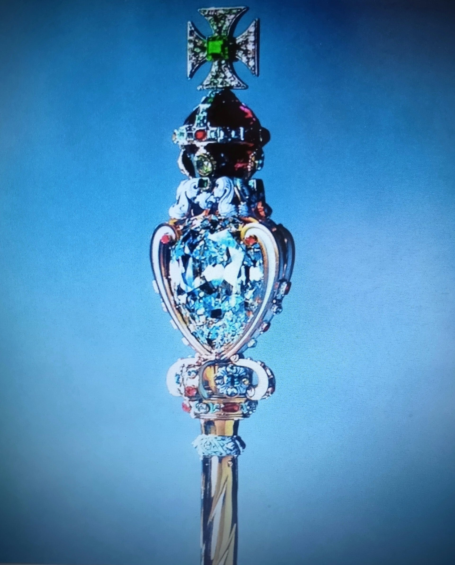 作品は、原石をカット後にイギリス国王に贈られたカリナン1の複製画(8枚目の写真参考)。国王の戴冠式には杖にはめられ(9枚目の写真参考)、317カラットのカリナン2は王冠にはめられ、2つのダイヤで国王の威厳が煌めきます(最後の写真参考)。