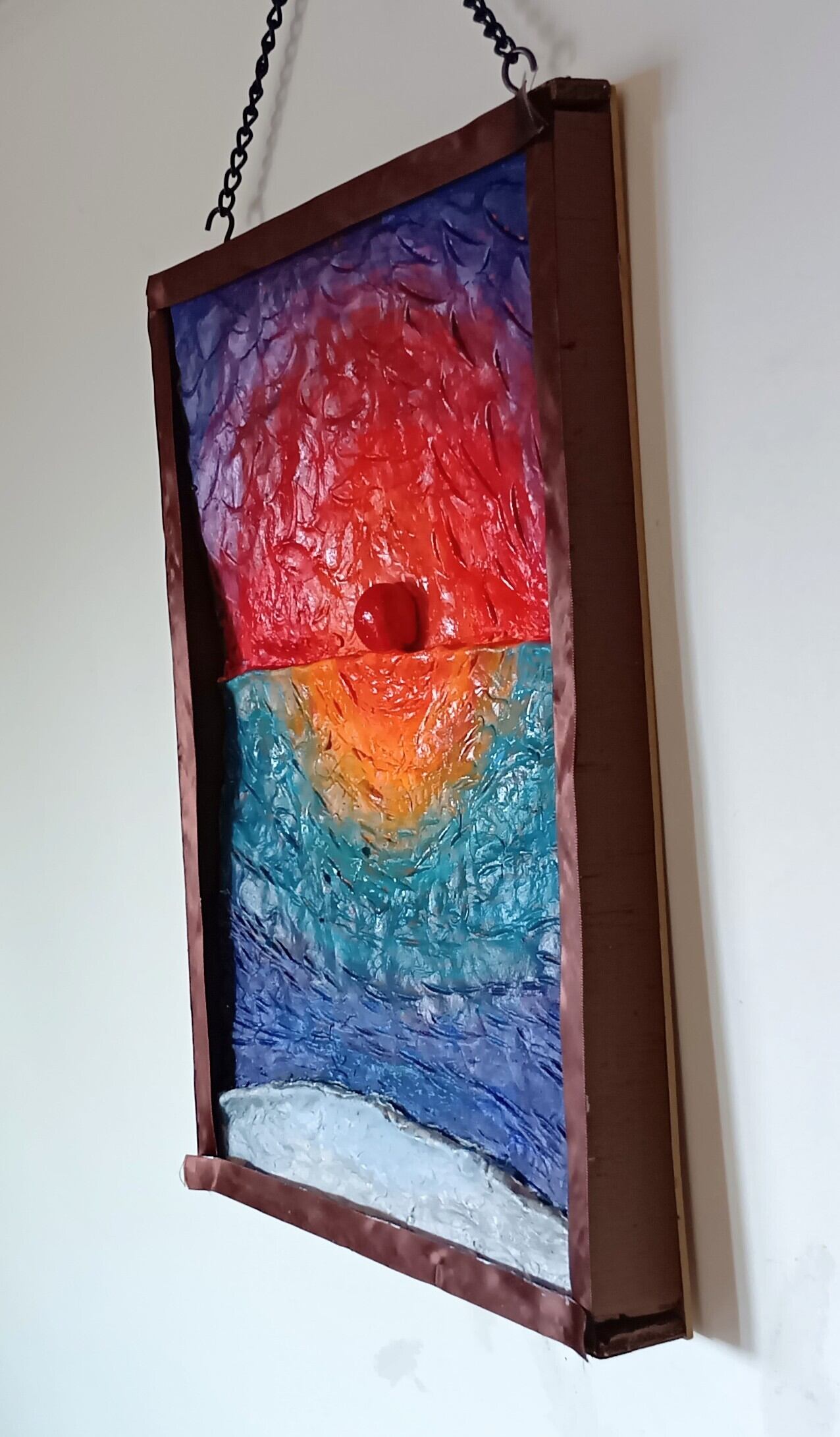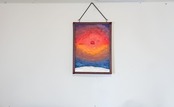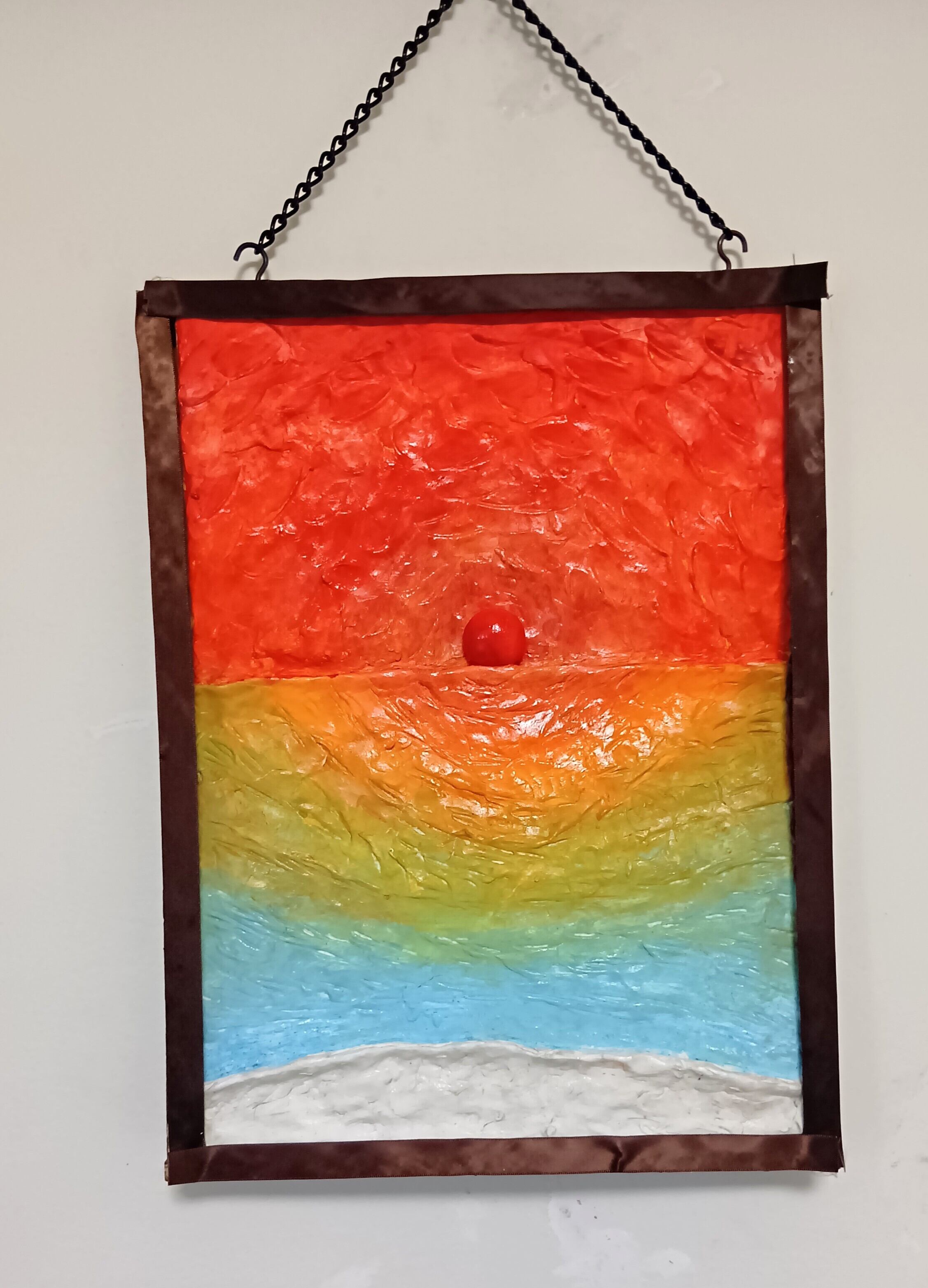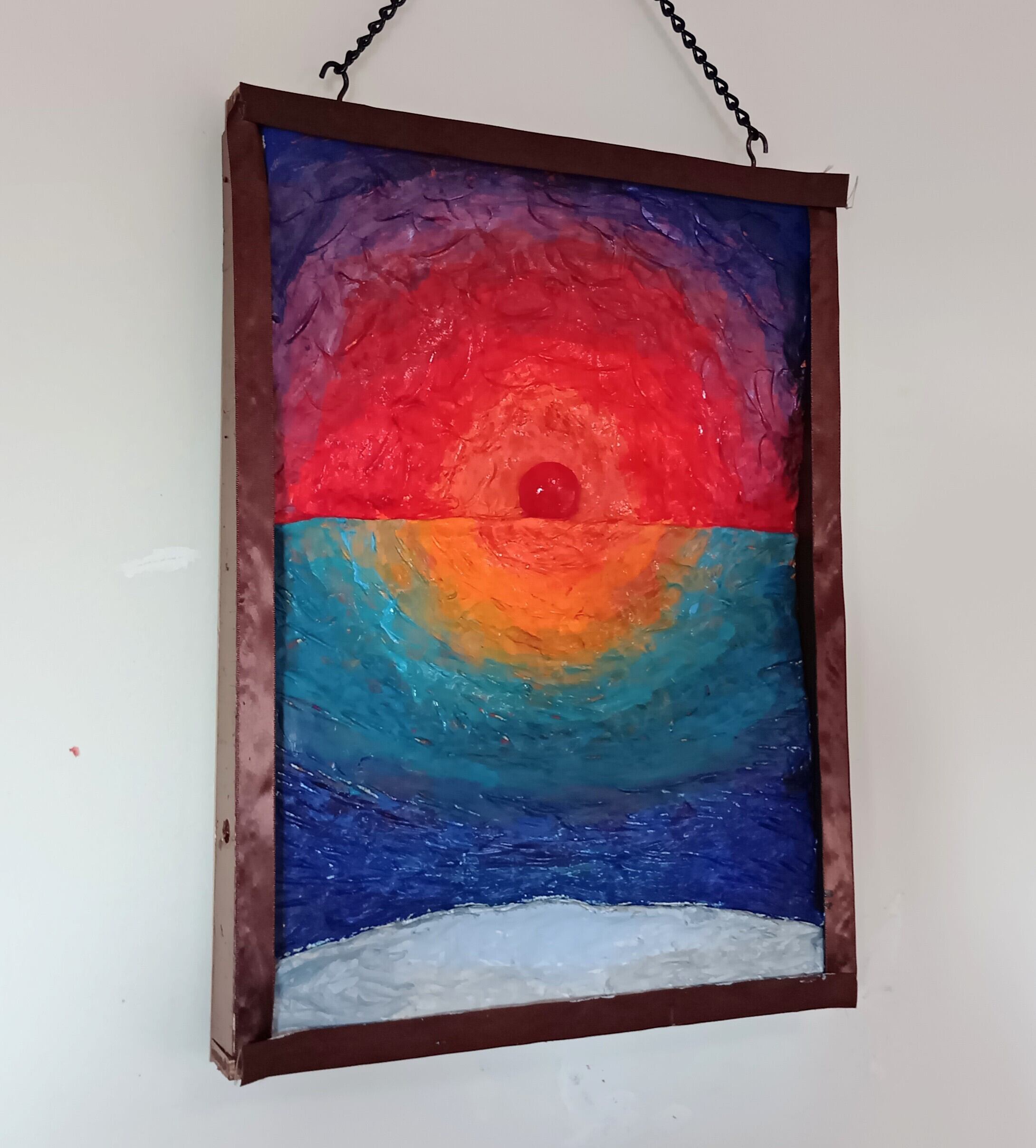 作品は、海上から昇る日の出の「浜辺からの朝日」の立体絵画。