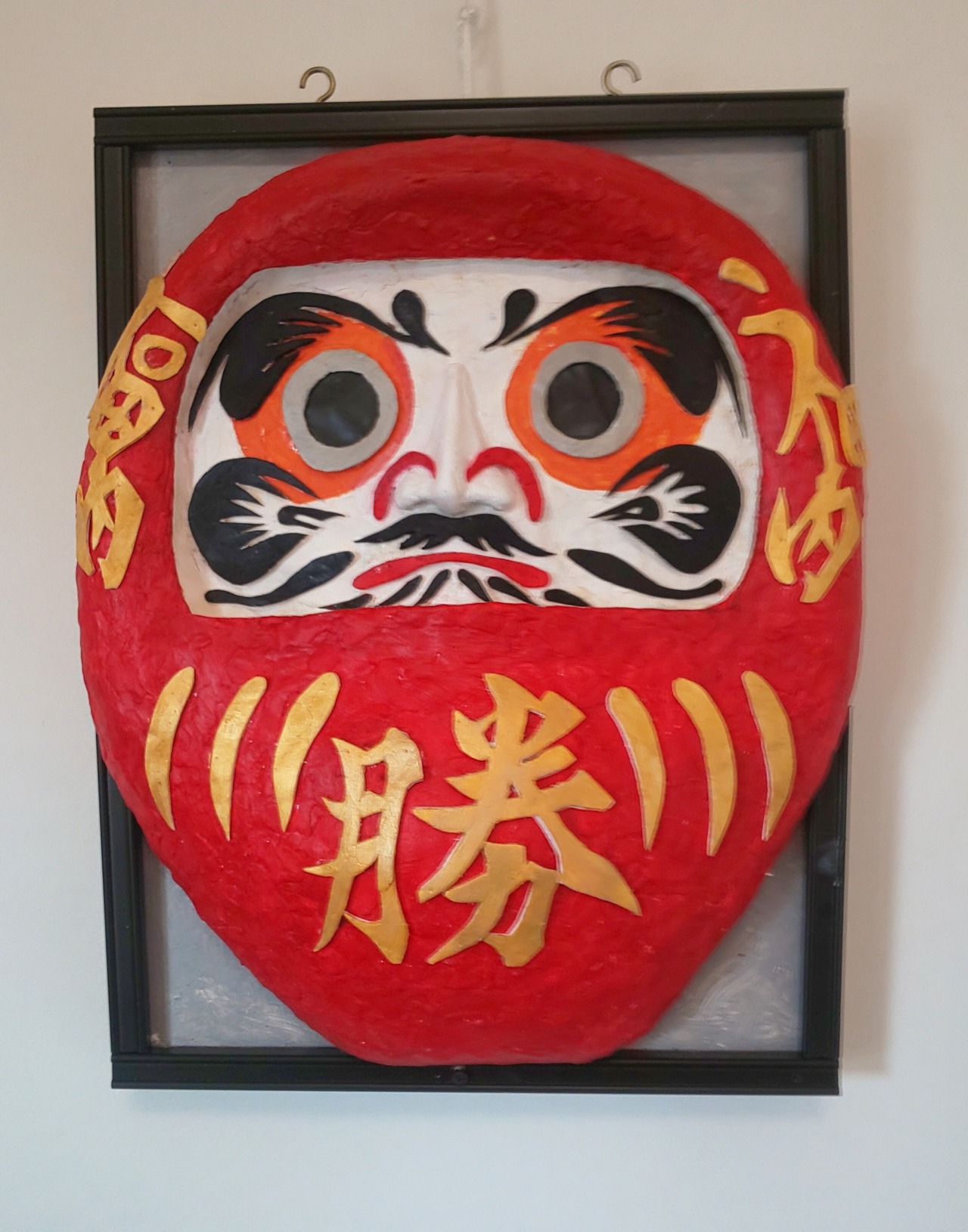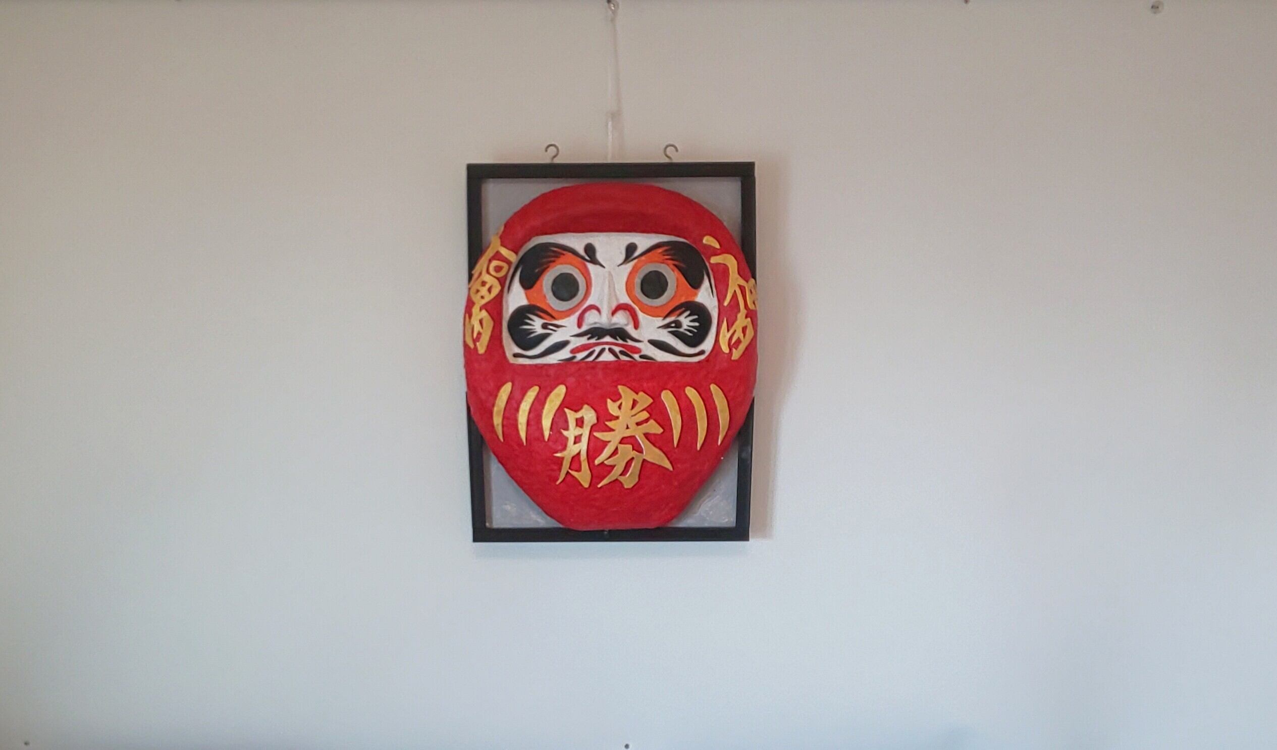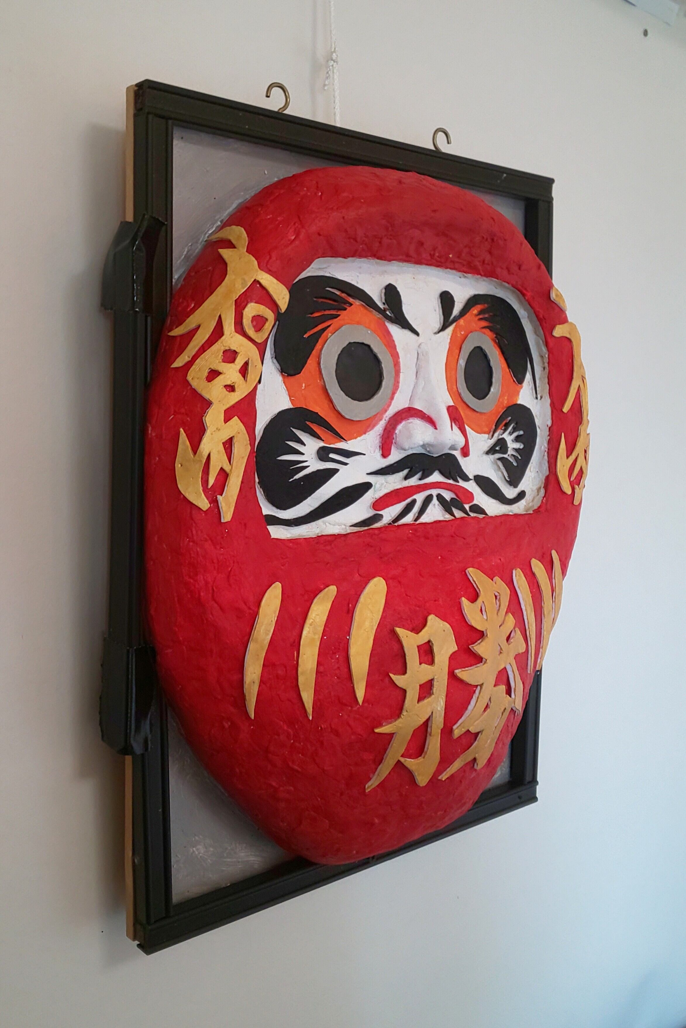 商品は、縁起物の「必勝祈願の壁掛けダルマ」の立体絵画。