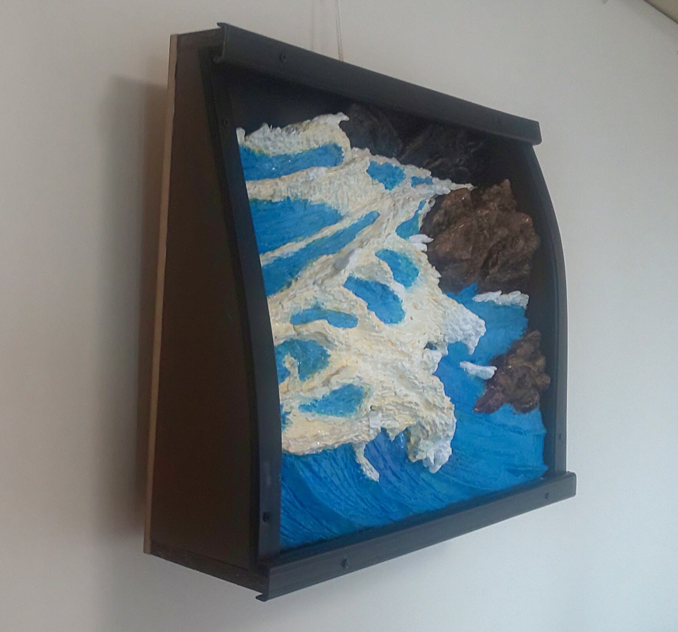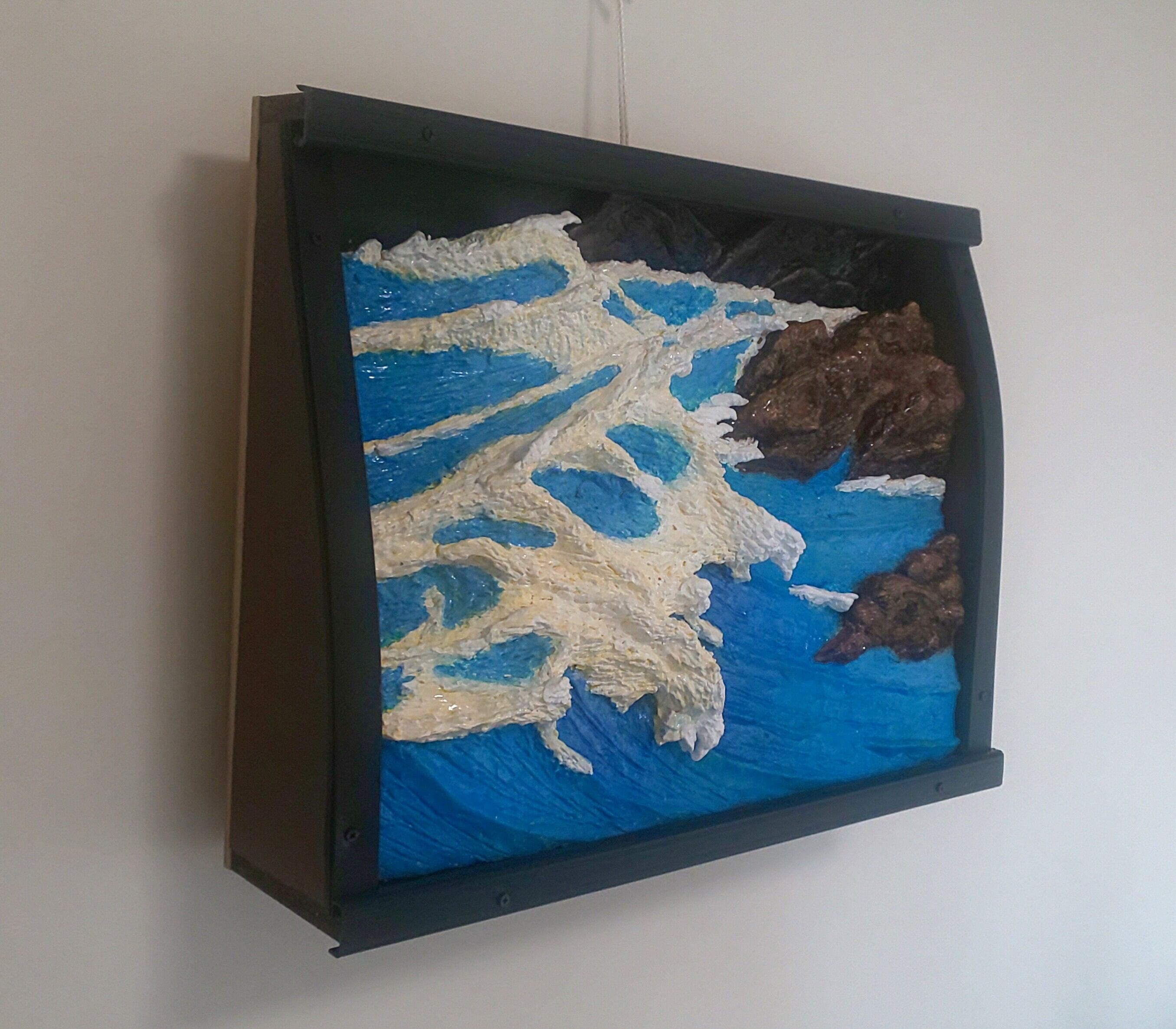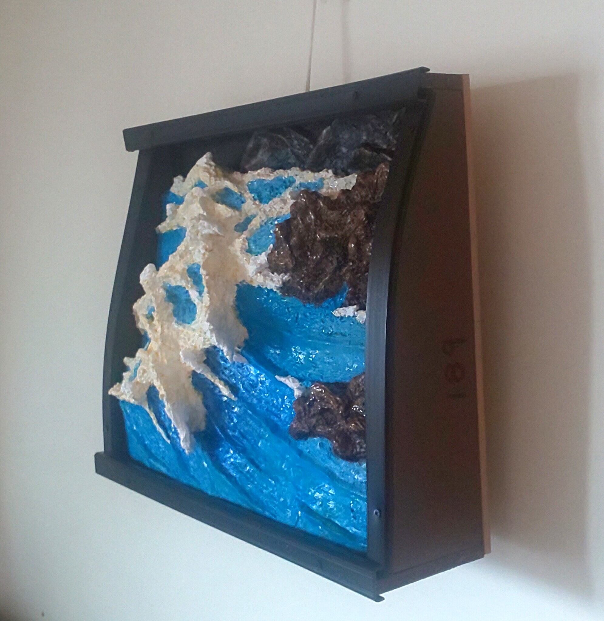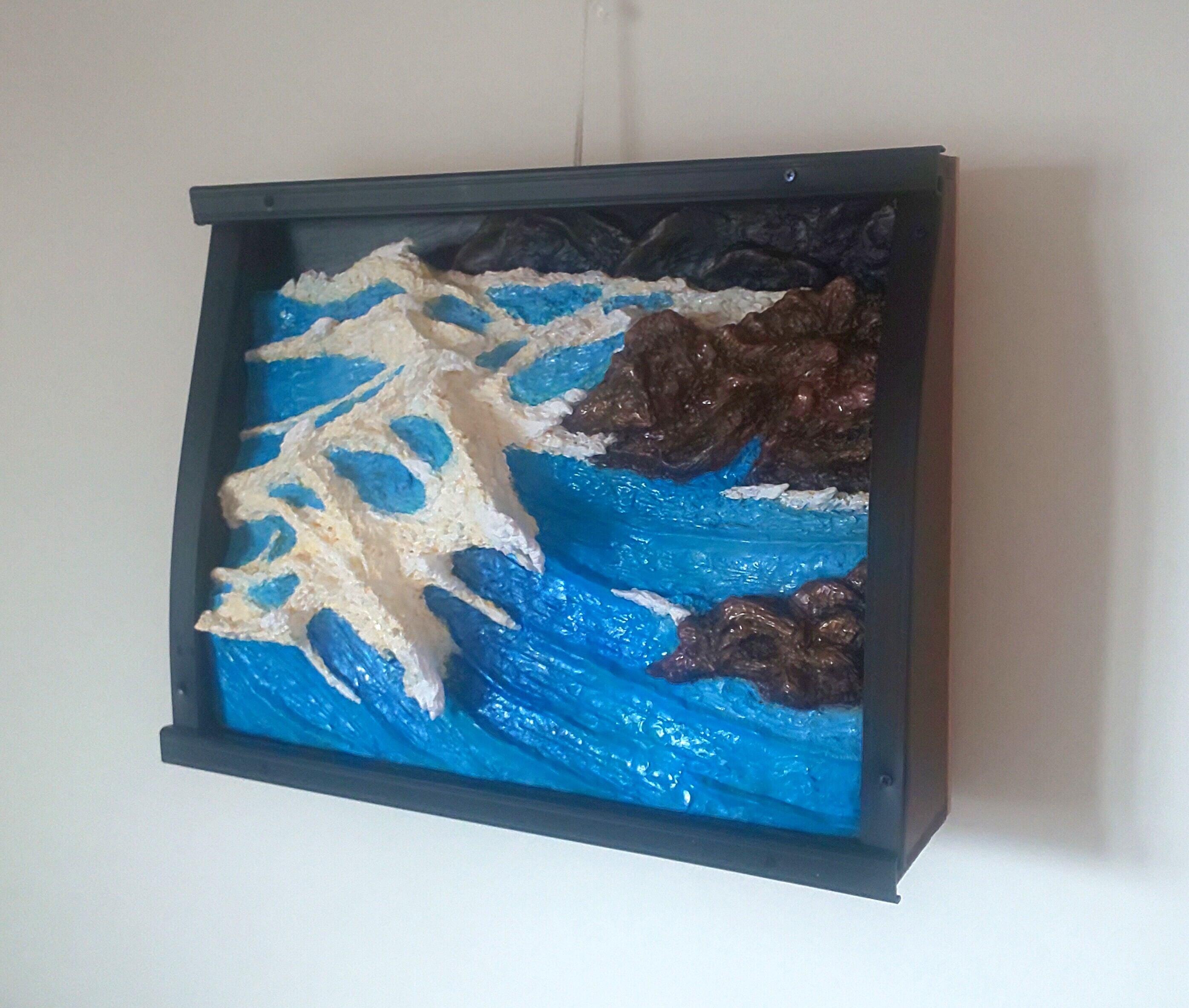 商品は、日本海の荒波が越前海岸の岩にぶつかる「断崖海岸に打ち狂う怒涛波」の立体絵画。